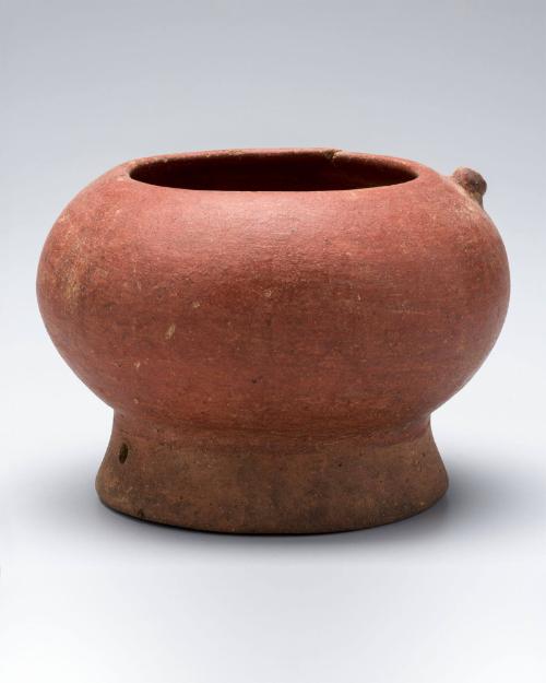 MediumRed ware. Flared base. Boss on lip. Traces of line decoration in black.