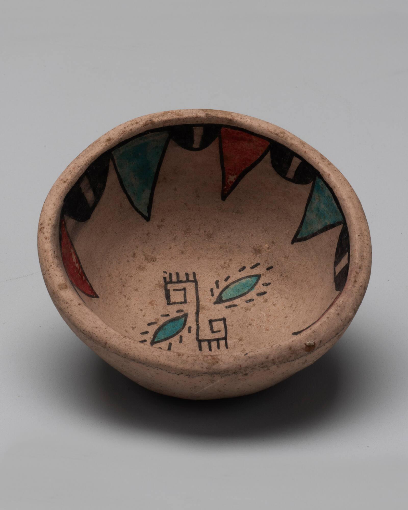 DescriptionLight ground, with plumed serpent motif painted in brown and red