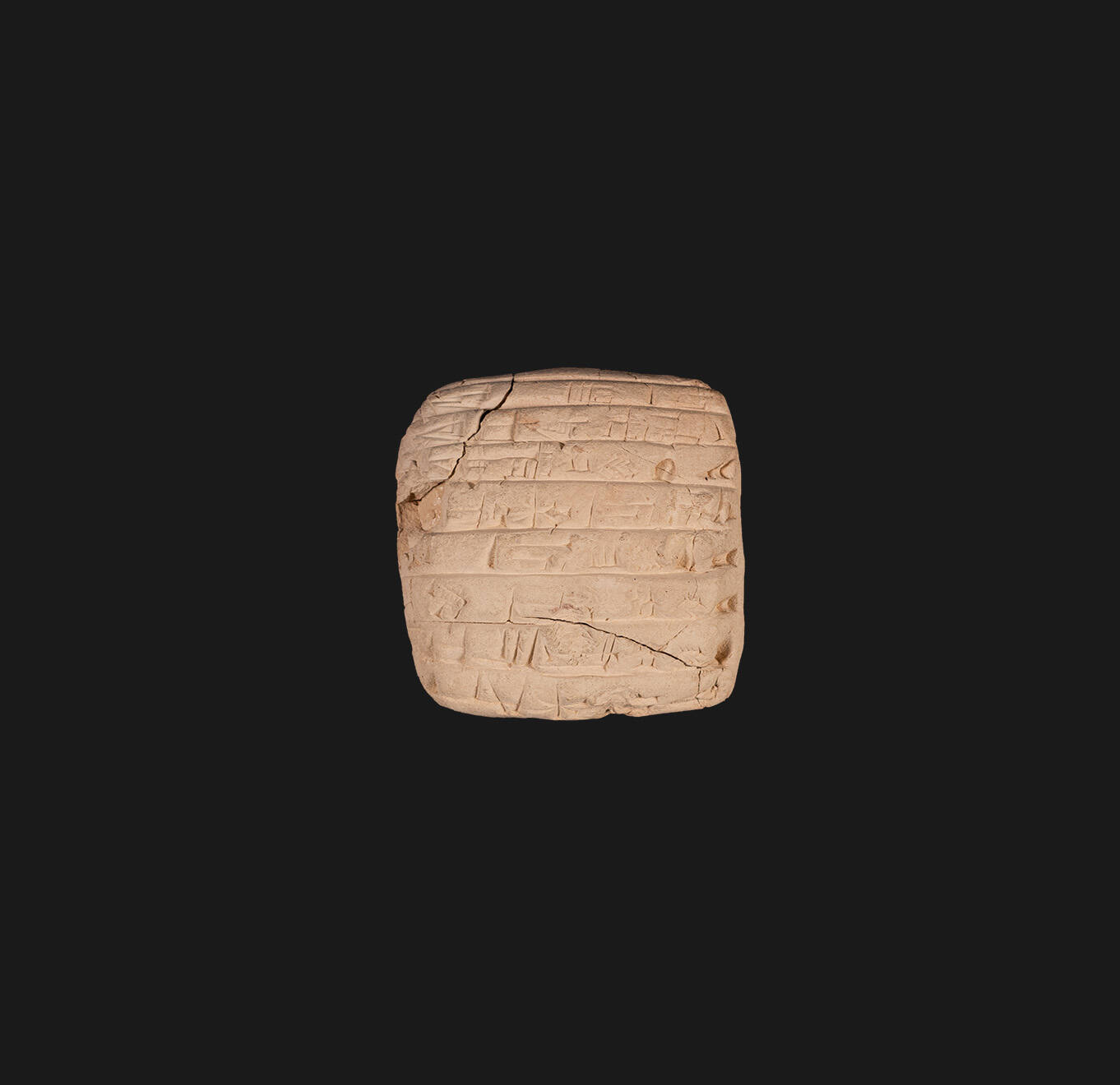 Label TextThis Old Akkadian clay tablet, dating to ca. 2340–2200 BC, records an administrative transaction related to land and barley distribution. Written in cuneiform script, it details the allotment of agricultural fields and mentions officials such as a foreman and a doorman of the goddess Inanna. Tablets like this provide insight into the economic and bureaucratic systems of Mesopotamian society.Published ReferencesVan De Mieroop, Marc, and Tremper Longman, “Cuneiform Tablets from the Toledo Museum of Art,” Revue d’Assyriologie et d’Archéologie Orientale, vol. 79, 1985, no. 4, pp. 24-25.