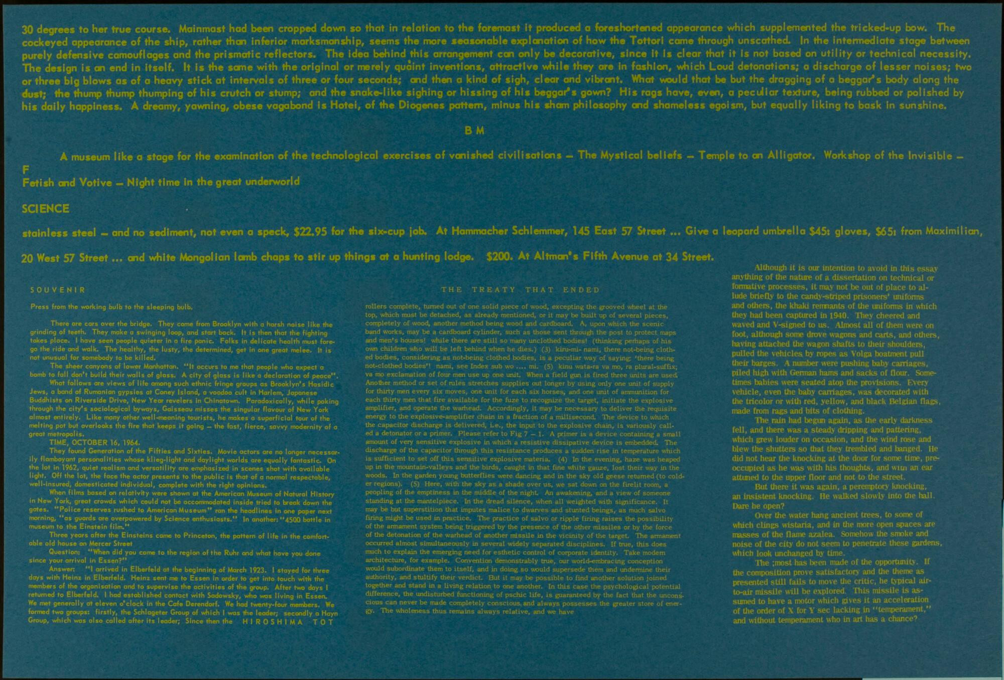 Untitled (Horizontal green text on blue, "Thirty degrees to her true course...")