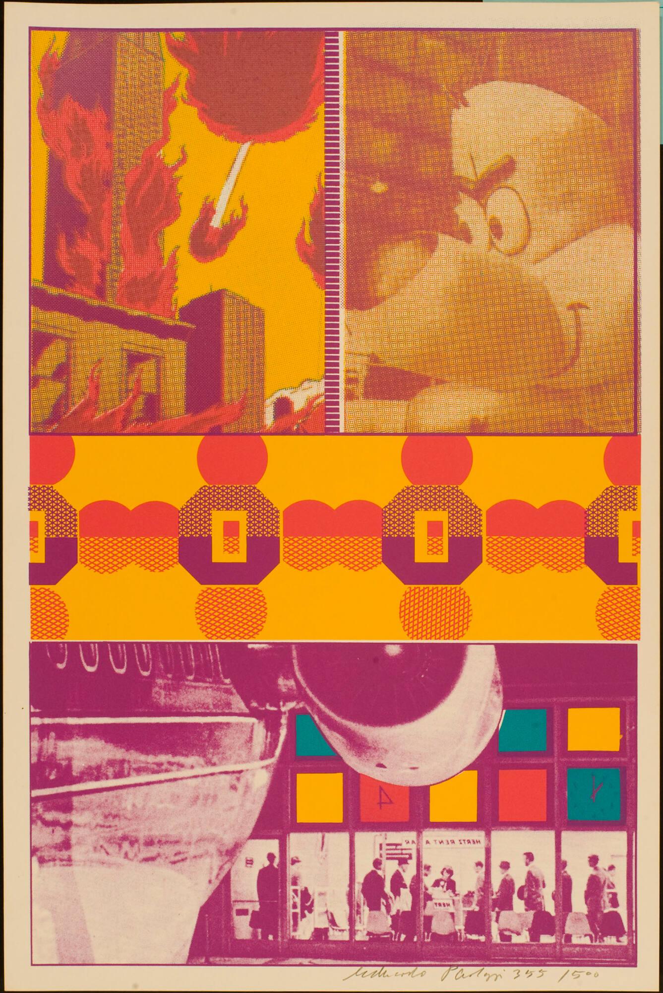 MediumOriginal prints: 1 of 100 screenprints (most incorporating commercial images and/or text) in black and in colors on various paper stocks (incl. title page). Text: letterpress (introduction and colophon). Paper: (in various colors) Centurian, Ferndown, Fibrex, Flexicover, Kendal and Soho cover boards, All British Cartridge, Astralux cast coated boards, and clear Acetate