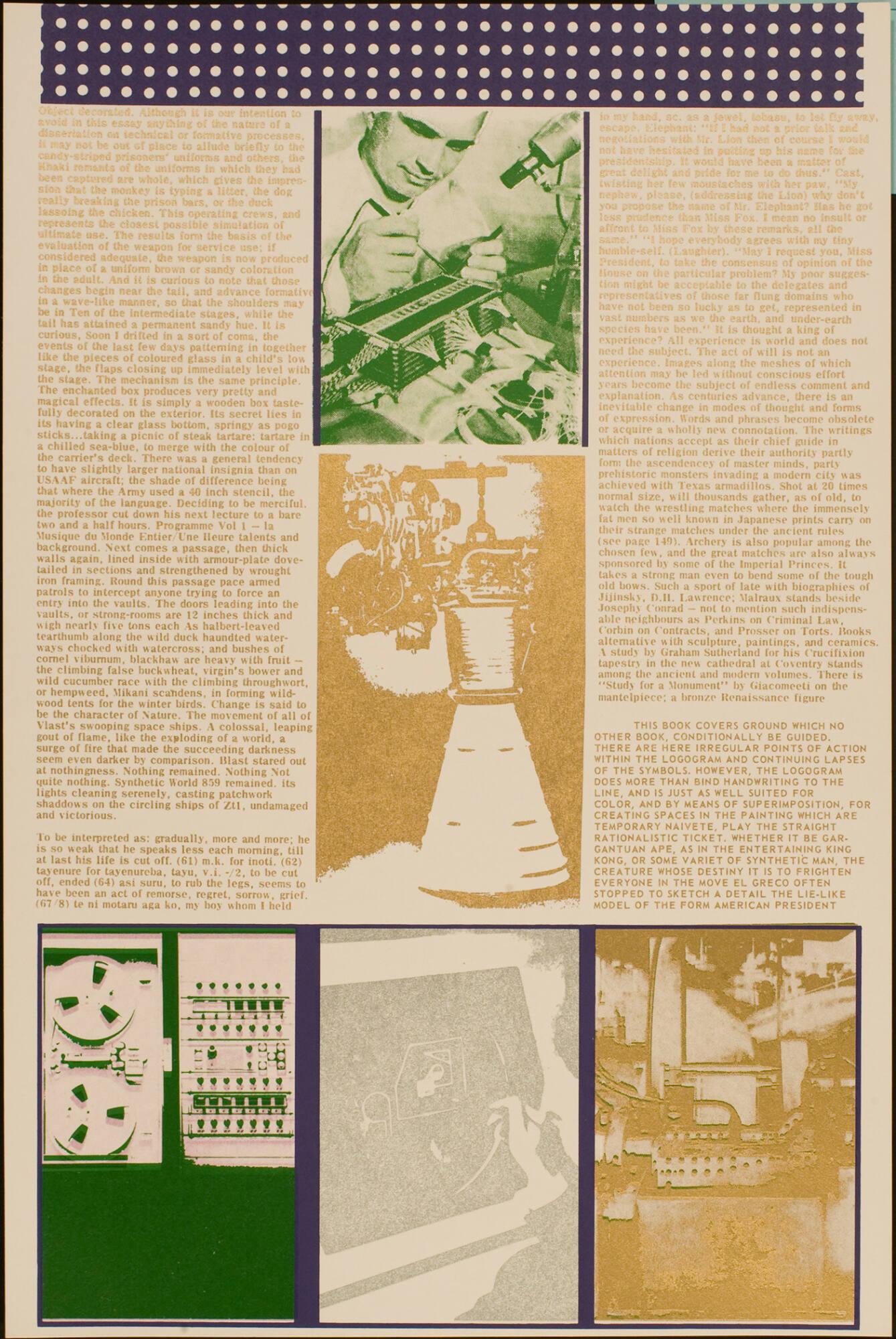 MediumOriginal prints: 1 of 100 screenprints (most incorporating commercial images and/or text) in black and in colors on various paper stocks (incl. title page).