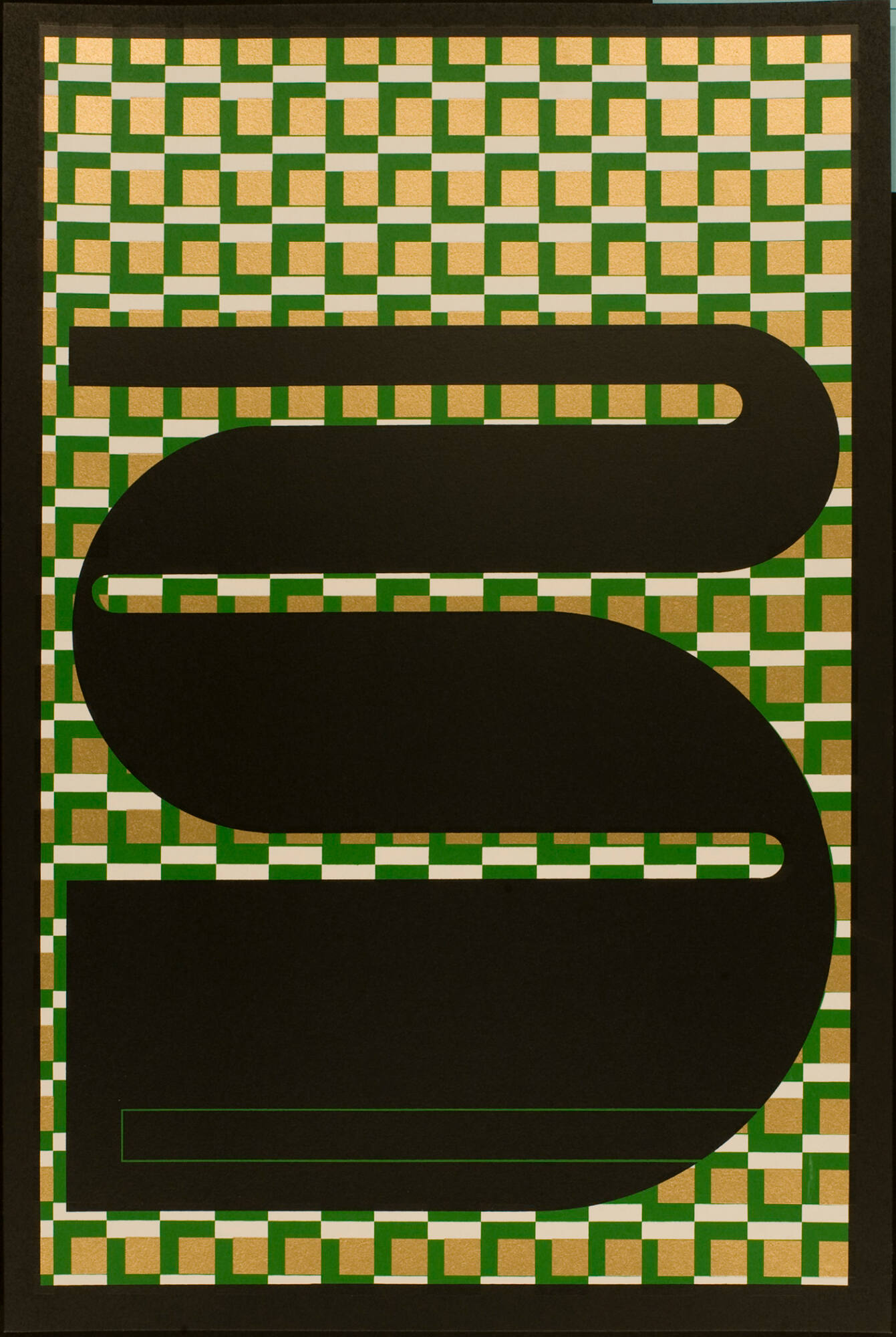 Untitled (Black S on green, gold, and white background)