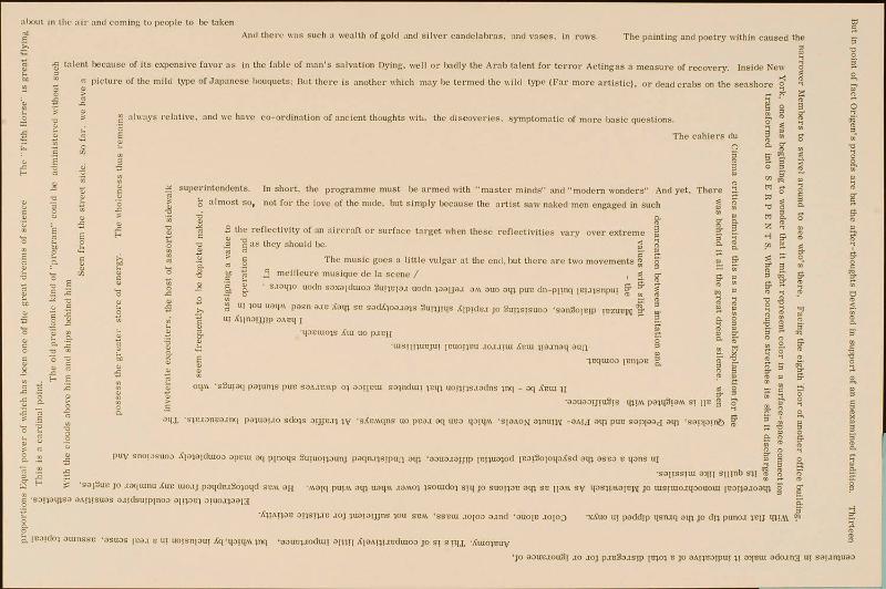 Untitled (Black text on white, "But in point of fact origen's..." in the shape of a concrete poem)