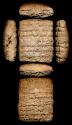 DescriptionSmall rectangular clay tablet with cuneiform inscription, used as an administrative tag. Surface bears Sumerian text documenting grain records.