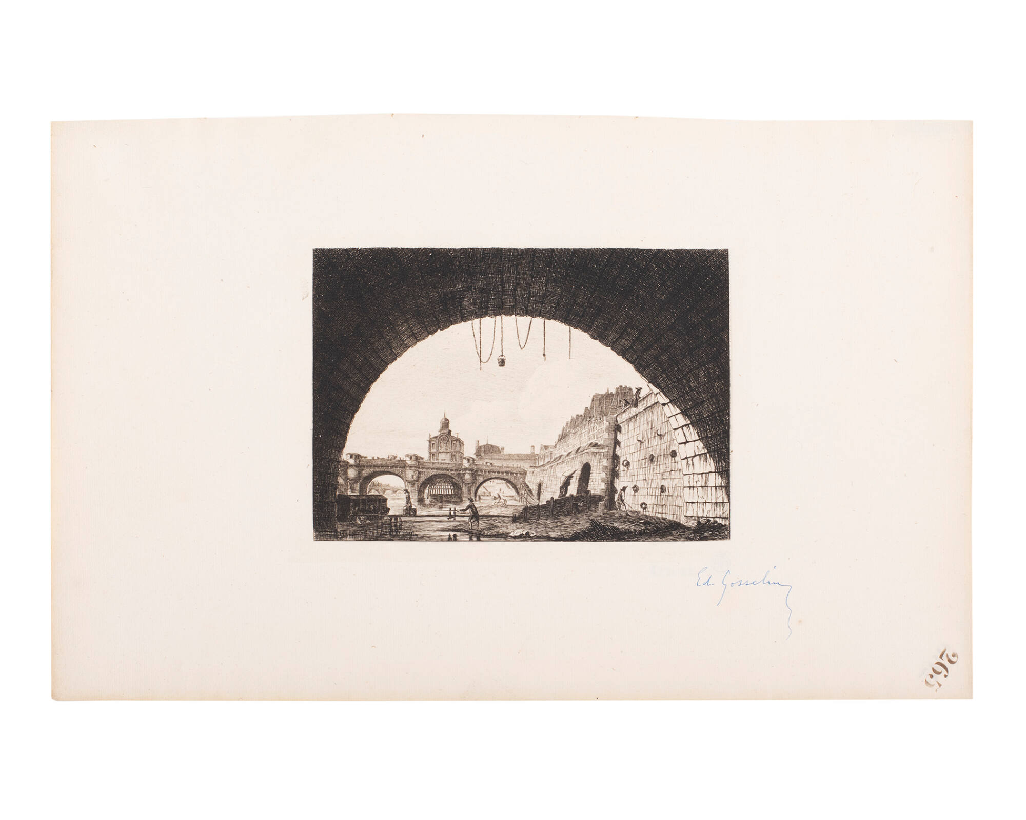 Le Pont-Neuf et la Samaritaine de Sessous la Premiere Arche du Pont-au-Change. Paris. (after Charles Meryon)