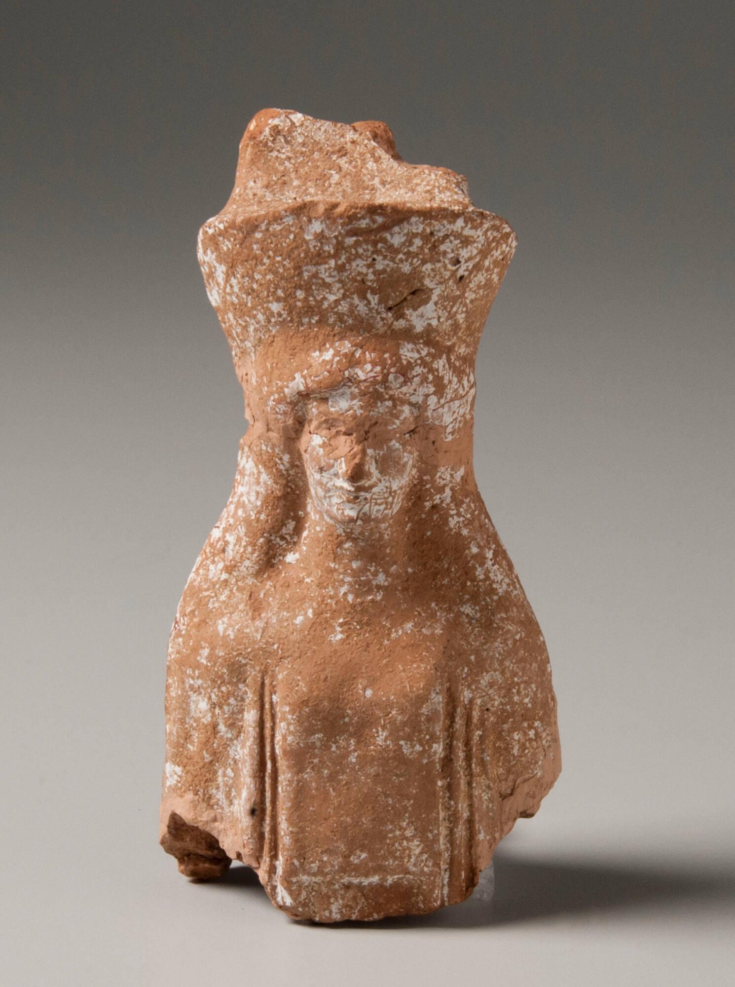 DescriptionUpper body of a woman (Demeter?) wearing a peplos and a tall headdress.