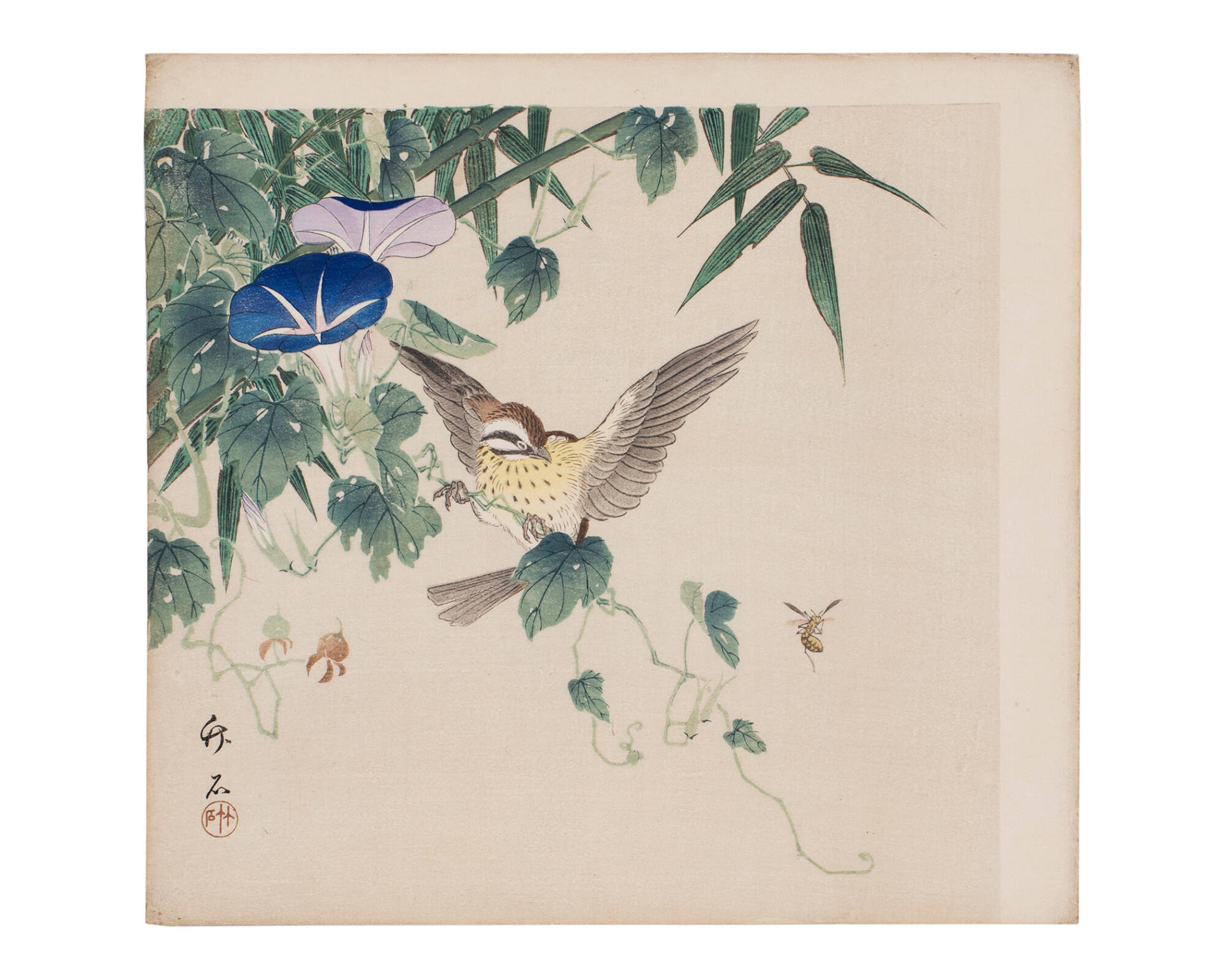 Sparrow, Morning Glory, Bamboo and Wasp