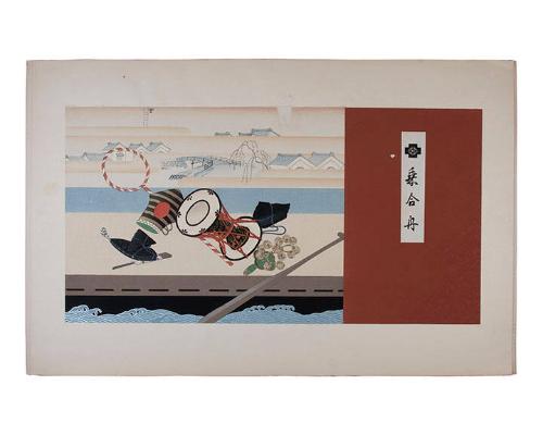 DescriptionDrum, hats, fan, rattle with background landscape.