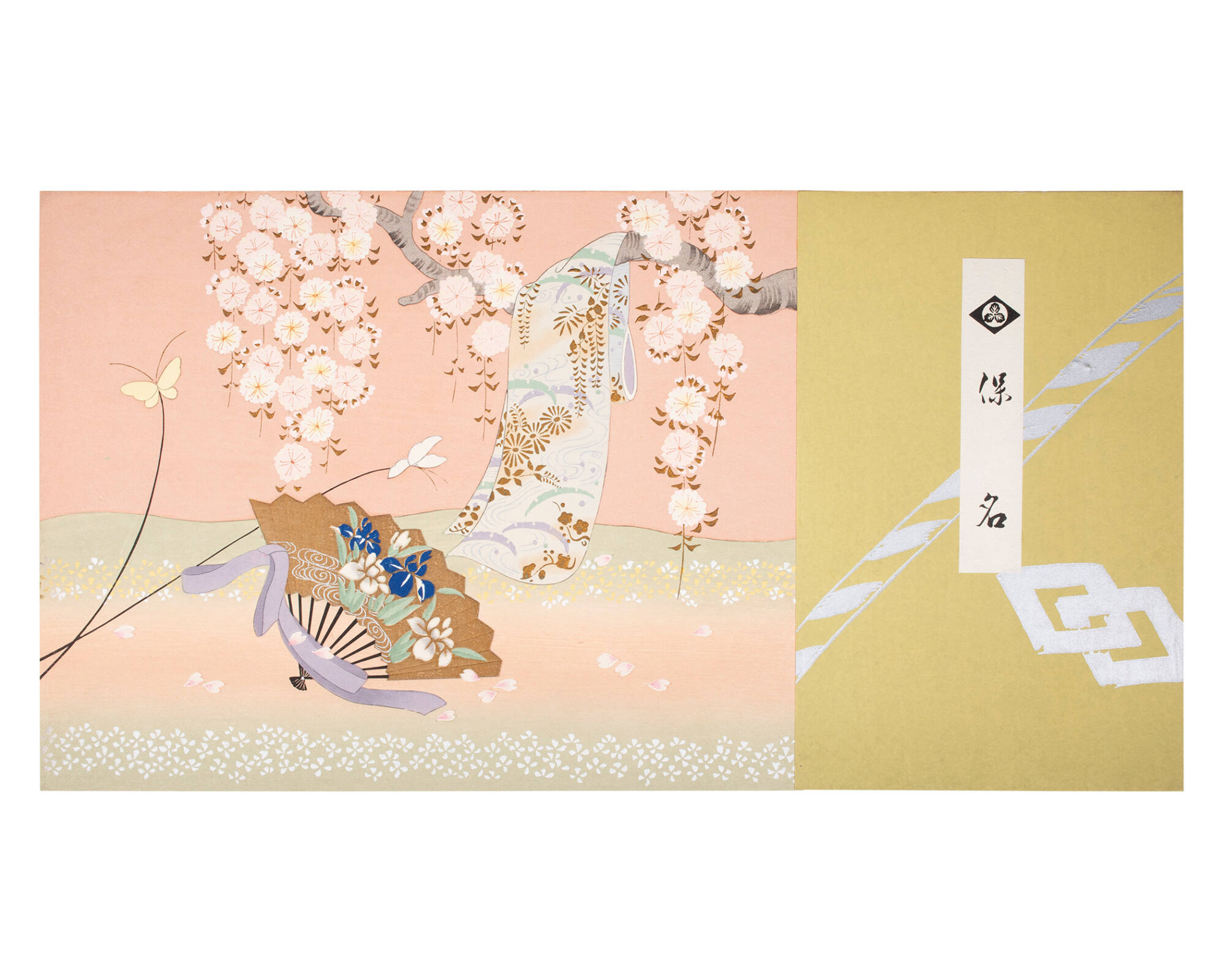 DescriptionFabric, fan and butterflies.