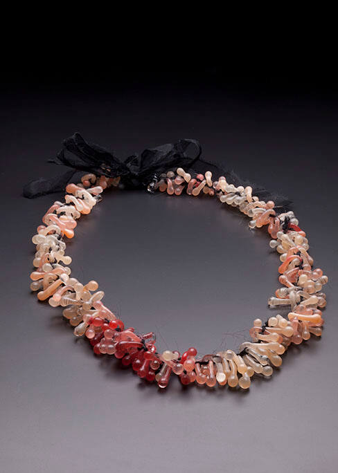 MediumLamp-worked borosilicate glass, Plasti-Dip, silk, sand, nylon thread, and fiber glass fused onto the borosilicate glass elements