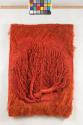 DescriptionPlain weave with discontinuous wefts and with supplementary pile wefts forming cut and uncut pile and additional warps knotted into weave, plied and wrapped.