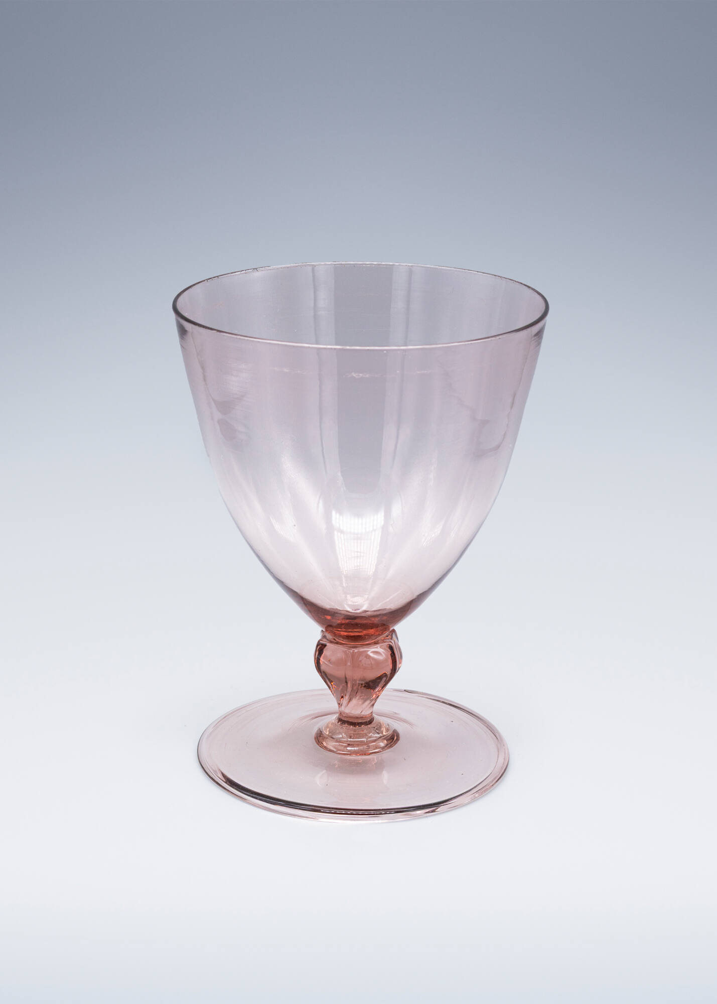 DescriptionLight purple wine glass on short solid stem.