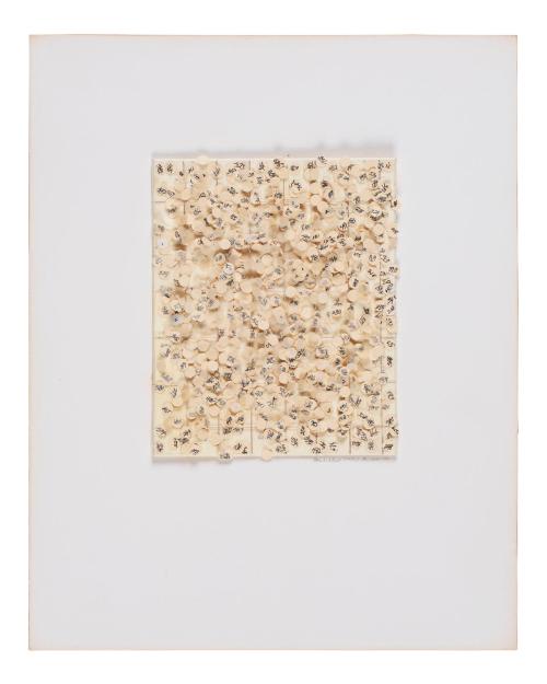 MediumBlack ink on punched and pasted paper and cloth with talcum powder and thread on board