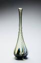DescriptionTall bottle form. Green glass with cobalt blue design. Small, hollow, polished pontil mark surrounded at a distance by a flat semi-polished ring.