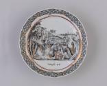 DescriptionScenes from Genesis en grisaille: teabowl with sacrifice of Abraham, inscribed Genesis 22; ssaucer with Rebecca at the well, inscribed Genesis 24.