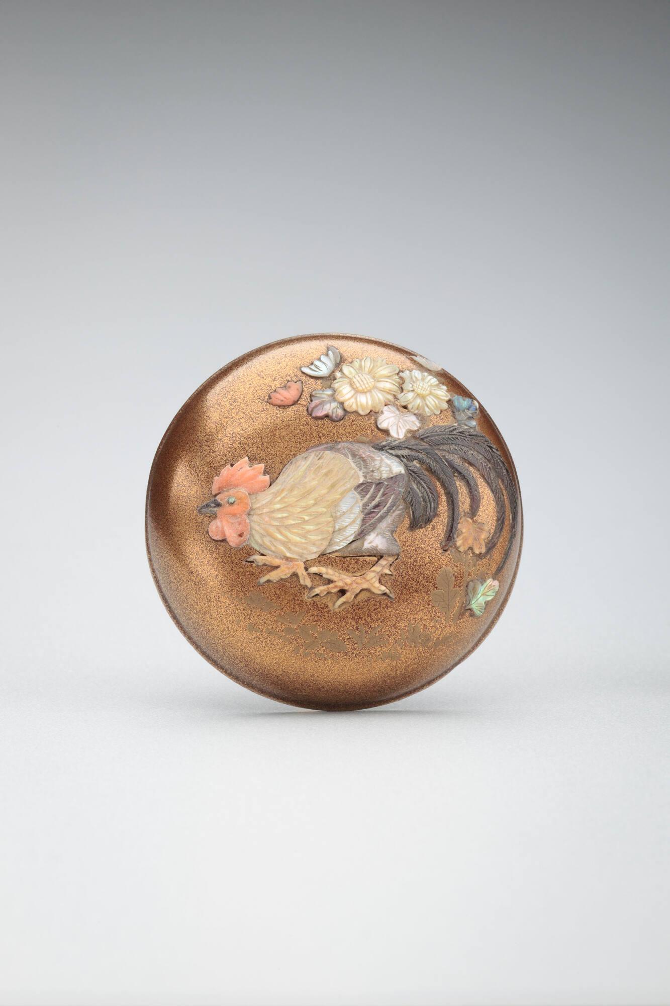 Netsuke: Rooster with chrysanthemums