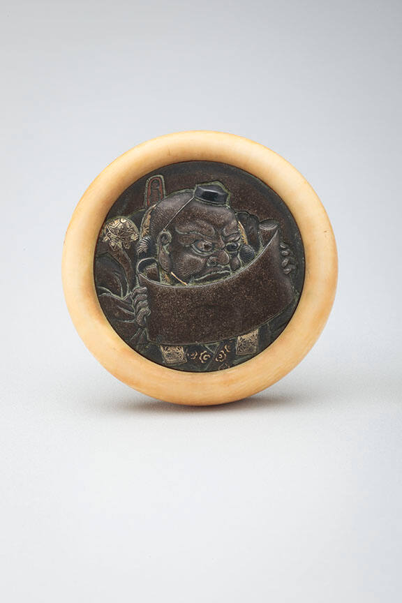DescriptionKagamibuta (mirror lid) of Benkei doing Kanjinchô (1 of 18 of the most famous Kabuki plays).