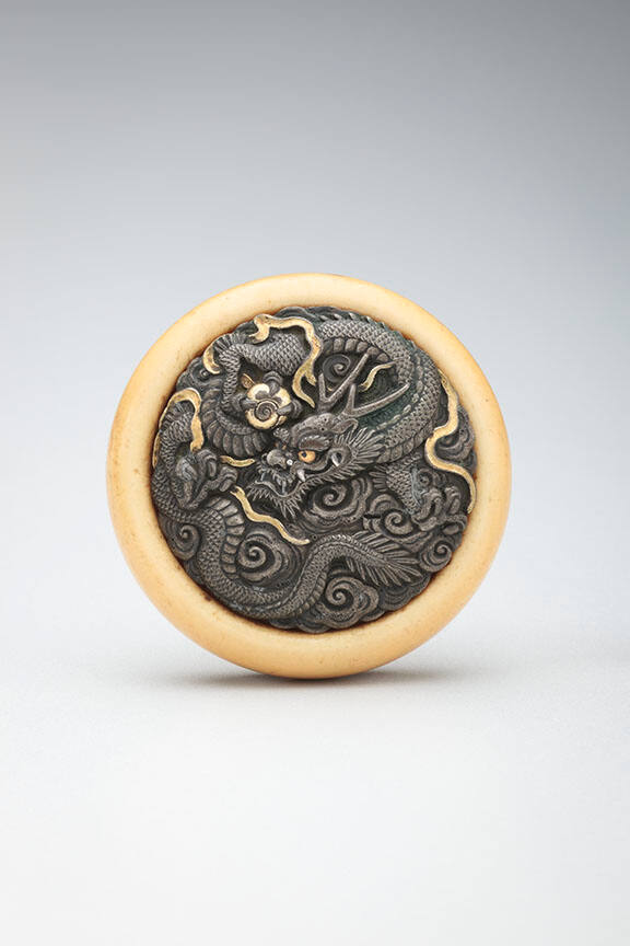 DescriptionKagamibuta (mirror lid) of a dragon in clouds.