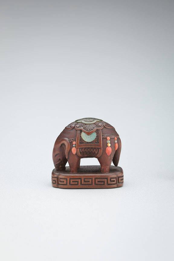 Netsuke: Caparison elephant figurine