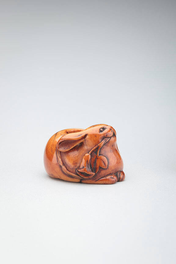 Netsuke: Seated rabbit with leaves in mouth