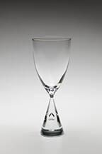 DescriptionColorless non-lead glass, blown and mold-formed. Water glass has a conical shape and a thin-walled blown bowl narrowing to thin waist. The lower part of gather molded to form inverted cone of solid heavy glass with an air bubble in the center.