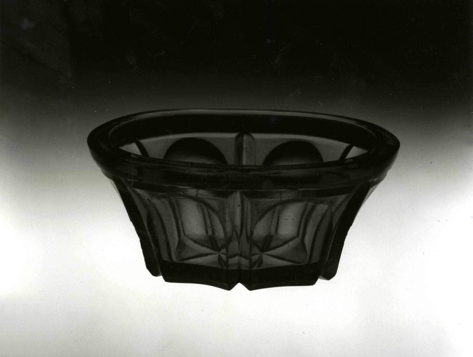 DescriptionPressed upright in a one-piece oval female mold bearing the Bigler pattern, with a cap ring that formed the side and top of the rim, by a plain male plunger. Six V-shaped grooves between the panels extend onto the underside of the base. No fire-polishing. No pontil mark.