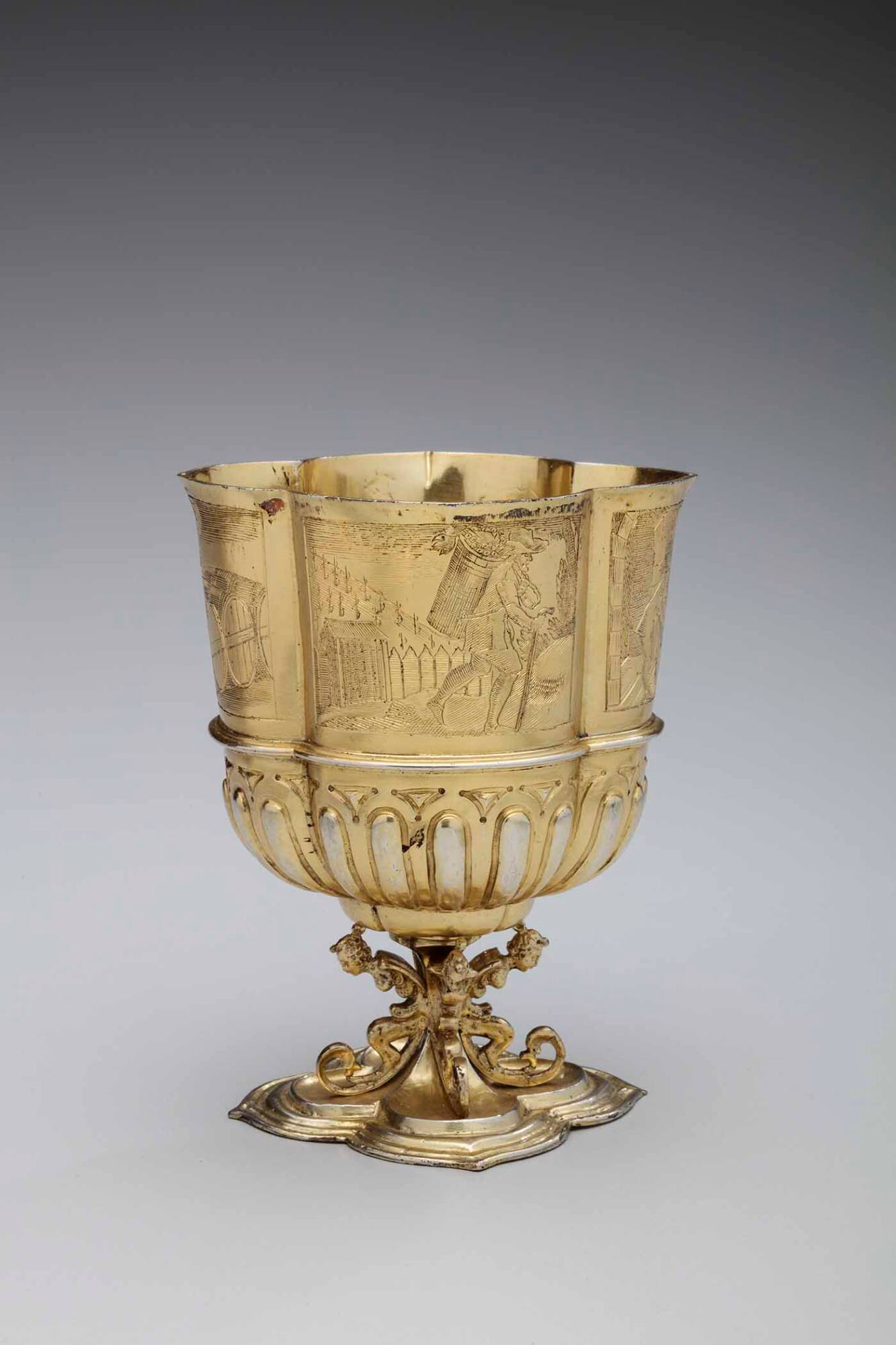 MediumGilded silver; engraved, repoussé and cast ornamentation