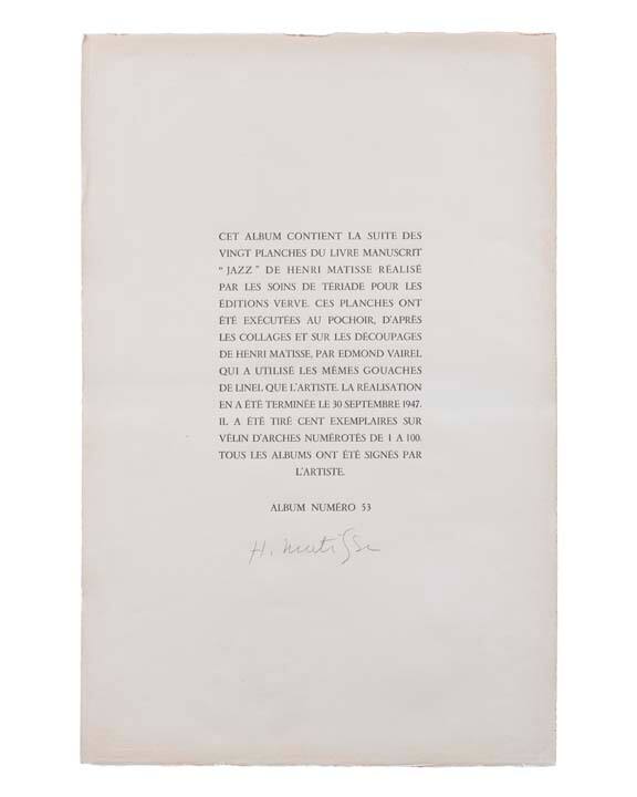 cf. Duthuit, Claude, Henri Matisse: Catalogue raisonné des ouvrages illustrés, Paris, 1988, no. 22 bis, col. reprs.