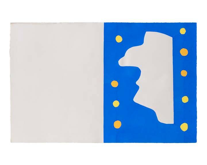 Label TextWhen Henri Matisse took up a proposal to make an album in color, he was seriously ill following cancer surgery and deeply disturbed by European events. Nevertheless, in 1943-44, working in vividly-hued cut paper, he created twenty collages from which the stenciled prints were made. Initially entitled The Circus, these images, as Matisse wrote, "have resulted from the crystallizations of memories of the circus, popular tales, or of travel." Here, he depicted the Codomas brothers, celebrated trapezists of decades before, executing their dangerous maneuvers above the net. In his text for Jazz, Matisse described his technique as "Drawing with scissors: Cutting directly into color." Late in life, he found new ways to resolve what he called "the eternal conflict of drawing and color." The subject here is a female swimmer watched by a red-faced man, a spectacle he recalled from a Parisian music hall. Like The Codomas nearby, Matisse's image parallels his accompanying text musing on airplane travel, on "the perception of limitless space in which for a moment we felt so free." “Drawing with scissors—cutting directly into vivid color reminds me of the direct carving of the sculptor on stone. My book has emerged from this spirit.” (Henri Matisse, Jazz) Henri Matisse first cut shapes in color paper in 1931–33 to create the design layout of his mural The Dance. It was a method he would continue to explore for the rest of his career. In 1943, at the publisher Tériade’s suggestion, Matisse began working on cutouts for a book. Unable to get the color he was looking for in commercial paper, he painted white paper with gouache (opaque watercolor). He then cut out the shapes and pinned them up on the wall of his studio, rearranging them until he was satisfied with the composition. Lithography did not reproduce the vivid colors of the painted paper satisfactorily, so Matisse decided on the pochoir technique, in which thick ink was applied with brushes through stencils. The book contains a facsimile handwritten text by Matisse that explores the artist’s thoughts on art and life. Jazz, however, was also issued as a portfolio of prints without text. Because the printing of this portfolio better captured Matisse’s color designs, it is the portfolio that Walter Bareiss collected.Published Referencescf. Castleman, Riva, A Century of Artists Books, New York, 1994, pp. 96--97, col. reprs.