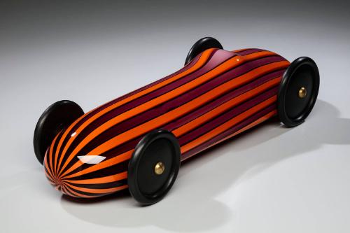 Label TextRichard Marquis is a prolific glass artist working in the Seattle area, who has been challenging what glass can express since the start of the Studio Glass movement. His series Land Speed Assault Vehicles is inspired by 1930s race cars used at the Bonneville Salt Flats in Utah. The shiny mirrored surfaces along with the aerodynamic forms give the stationary glass cars a sense of racing motion.Exhibition HistoryCorte Barozzi, Italy, Caterina Tognon Arte Contemporanea, Richard Marquis - Racing for Speed, Summer 2009.