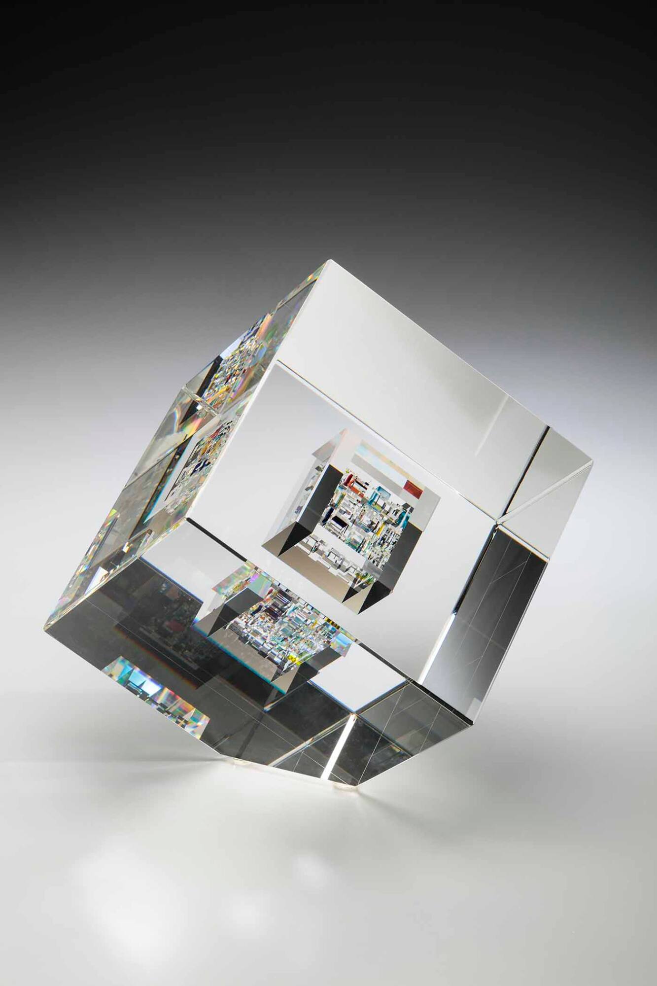 MediumOptical glass, colored transparent glass; cut, laminated, and polished.