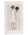 DescriptionIn 'Mirror, Mirror; Mulatta Seeking Inner Negress II' Saar’s depiction of a female figure gazing at her reflection is used to question the shifting character of identity in a society that primarily defines race in fixed, dualistic terms. The woman’s form is outlined with a thick black contour to distinguish it from her pale skin. Saar depends upon the printmaking technique referred to as chine-collé to give the woman’s white slip dress a delicate appearance. The style of her black facial features, as reflected back in the hand-held mirror, are reminiscent of traditional African woodcarvings and contrast with her pale skin color and white shift. Saar’s use of two different flesh tones to describe the woman’s form relates directly to the term “mulatta” in the work’s title and Saar’s mixed racial heritage.