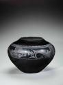 DescriptionBlackware jar featuring a pattern that symbolizes a bird, rain and thunderclouds.