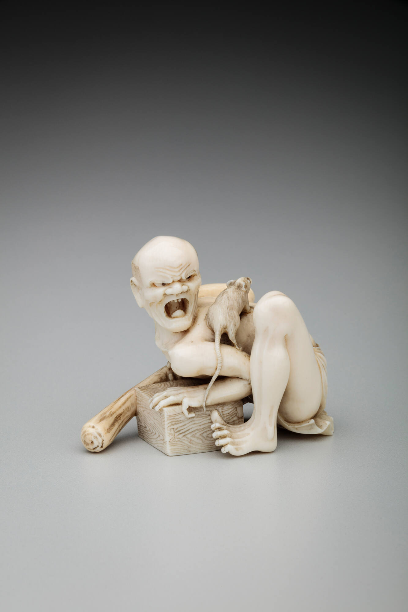 DescriptionThe figure is crouching over an upturned box as the rat escapes over his shoulder.