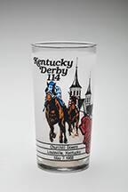 on the winning jockey and horse. Commemorating the 1988 Derby, this collectible glass would have been used to house the traditional drink of the race, a mint julep (promoted as the official drink since 1938).The first of these commemorative glasses were used in 1939 and have been used since. Each historic frosted glass lists all previous Derby winners, as seen in this example from 1988.