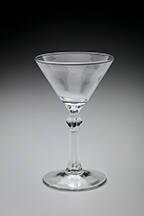 DescriptionMade out of clear glass, this small martini glass stands about 5 3/4 in. tall with a diameter of 3 5/8 inches. The stem of the glass which is anchored to the circular base, has vertical fluting on the surface. Below the base of the martini glass there is a decorative circular detail that ties the two sections together in an elegant manner. The spherical details
