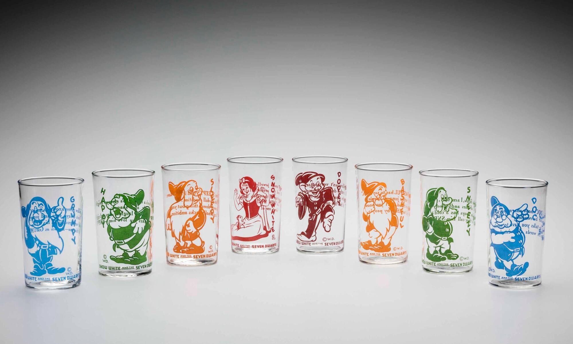 DescriptionIn the 1930s Walt Disney approached Libbey to produce glasses to advertise Disney's new film, Snow White and the Seven Dwarfs (1937), the first full length cel-animated film. These glasses were used by the dairy industry and packaged as free promotional products with cottage cheese.