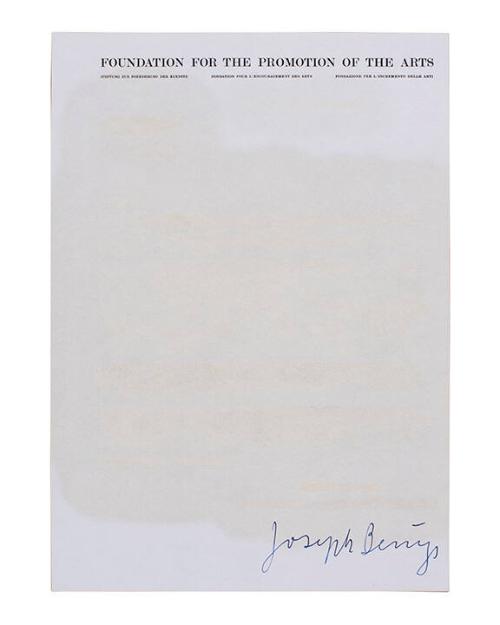 Label TextJoseph Beuys Multiples While in the German air force during World War II, Joseph Beuys almost died in a plane crash in the frozen Crimean peninsula in the Ukraine. He survived because someone wrapped him in felt and an insulating layer of animal fat. As a result of this experience, these materials later became recurring motifs in his works, symbolizing warmth. They also symbolize spiritual warmth, the genesis of change, and/or a spiritual awakening. After the war Beuys became an artist, teaching at the Düsseldorf Academy beginning in 1961. Eleven years later the administration dismissed him because of his unorthodox teaching methods. In response, Beuys founded his own school, the Free International University, where he could teach and create art. Part of his theories of freedom and democracy included the production of multiples—a work of art that could be reproduced many times. With his multiples, Beuys hoped his art and his ideas would reach a large number of people. Beuys often used commonplace materials and drab colors, believing they would evoke a colorful world within the viewer. For him, it did not matter if the multiples were not easily or fully understood. He said, “…the multiples are often quite minimal allusions, just suggestions.”Published Referencescf. Schellmann, Jörg, editor, Joseph Beuys, the Multiples: Catalogue raisonné of Multiples and Prints, Cambridge, Mass., 1997, no. 77