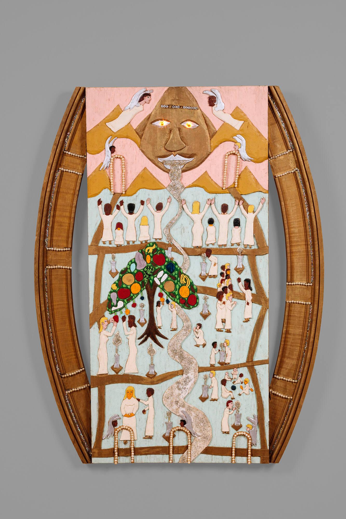 MediumMixed media (carved wood, light bulbs, artificial pearls, glue, glitter, plastic Letters, paint)