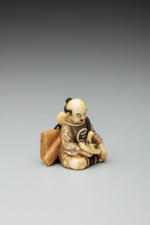 Seated Merchant holding a Long-nosed Tengu Mask with Tobacco Pouch