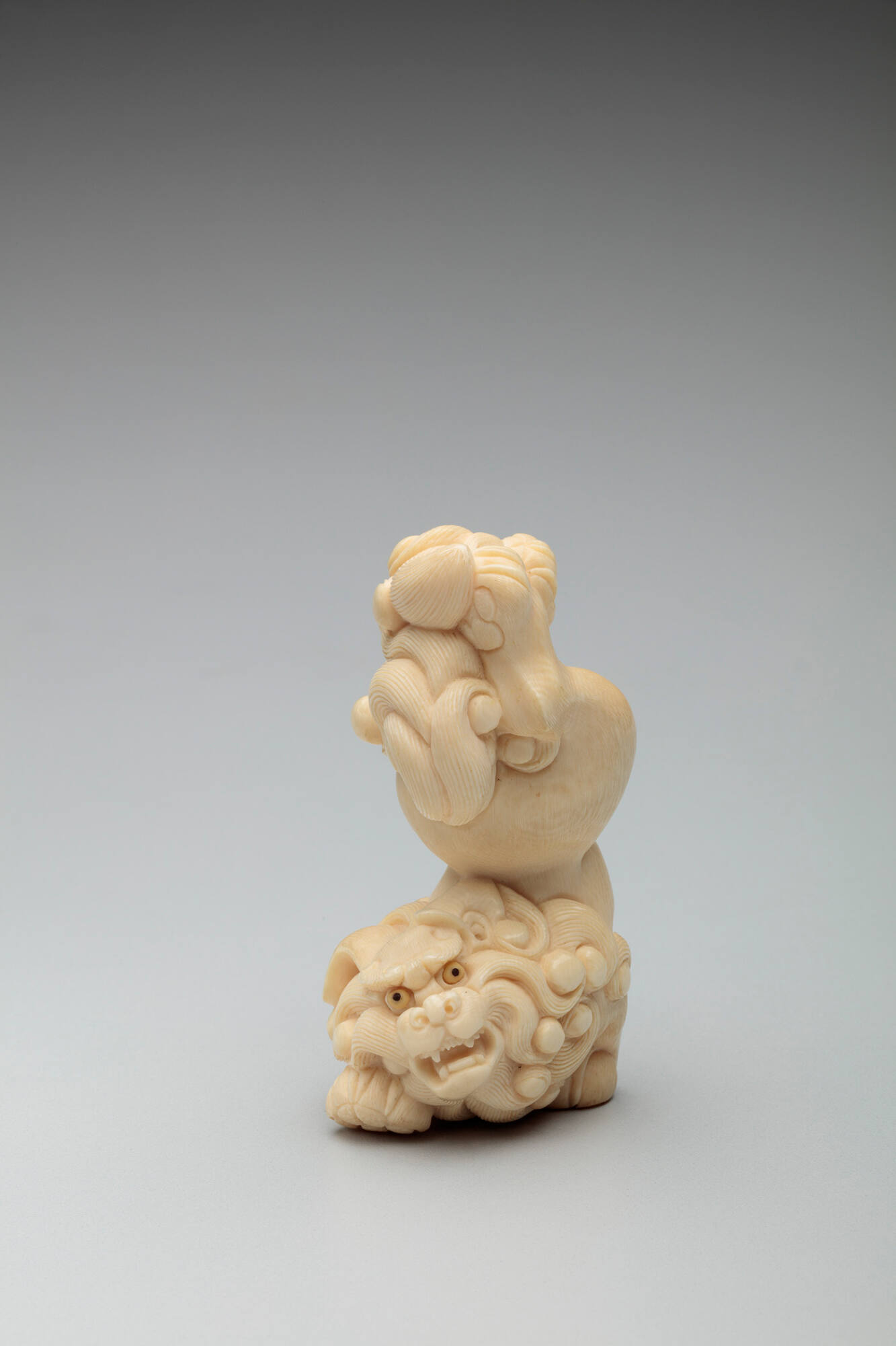 DescriptionCarved ivory with inlaid tortoise shell