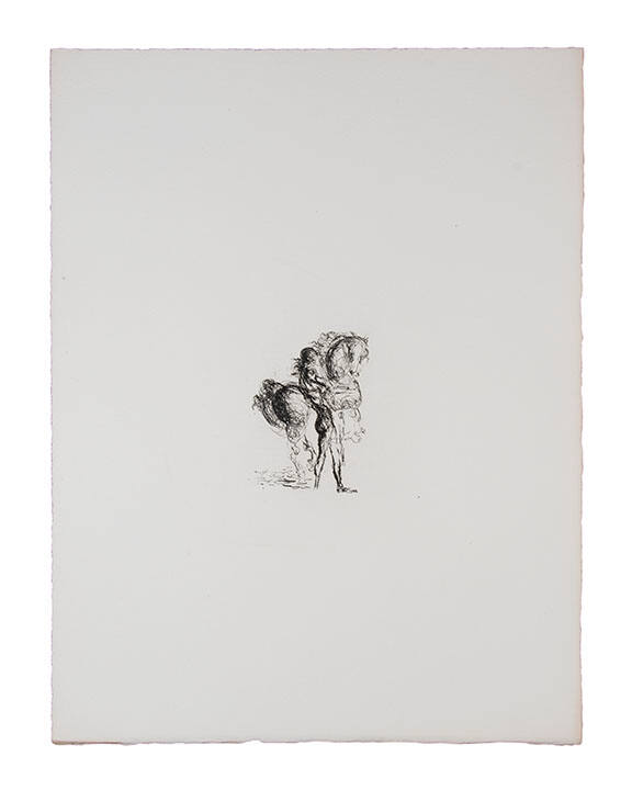 Label TextA prototype of Surrealist literature, LES CHANTS DE MALODOR, a macabre and hallucinatory narrative prose poem, was first published in 1868-69. This was Dali's first major work of original book illustration. Les Chants de Maldoror by the self-styled Comte de Lautréamont, a macabre and hallucinatory prose-poem of violence, cruelty, and perversion first published in 1869, was a text much revered by the Surrealists. Salvador Dalí, for his commissioned etchings, recycled motifs from his paintings and drawings – soft watches, decaying flesh, eroticized bodies, knives, bones, crutches, pedestals – and exploited his deep knowledge of Freudian symbols to create vivid visions of putrefaction, cannibalism, death, castration, and fetishized sex.Exhibition HistoryToledo Museum of Art, The Bareiss Collection of Modern Illustrated Books from Toulouse-Lautrec to Kiefer, 1985, no. 16