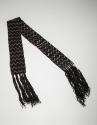 DescriptionFinely and intricately finger woven in black wool, interspersed with opaque, white glass pony beads, in a concentric zigzag pattern. The warps extended to form tightly plaited and twisted fringe; decorated with porcupine quillwork on the panel and fringe.