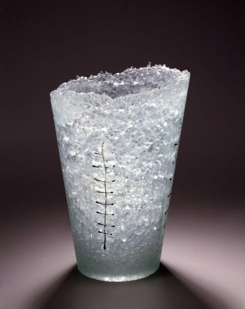 Originally, the Studio operated out of the Higgins' Chicago apartment, with kilns set up behind the sofa. Everyday items, such as bowls and plates, were transformed, through a mix of geometric and curved lines, and bold use of color, into objects still useful, yet also visually vibrant and exciting. Promoted as “an exclamation point in your decorating scheme”, the unique blend of artistry and practicality that Higgins glassware offered quickly attracted buyers. Working round-the-clock in split shifts, Michael and Frances met ever-increasing orders from such major retailers as Marshall Field's, Georg Jensen, and Bullock's Wilshire. Their Studio operation moved to more traditional surroundings in 1957, thanks to a partnership with Dearborn Glass Company of Chicago. The Higgins name received national exposure through Dearborn's extensive, and heavily promoted, line of “Higginsware”. The line included, in addition to a full range of tableware, everything from lamps and ashtrays, to candleholders and “Rondelays” for use as room dividers, window treatments, and other décor applications. In 1966, following their Dearborn tenure, and a brief stay at Haeger Potteries, Michael and Frances Higgins elected to return to private studio work. Here, they were free to set their own goals, meet their own standards, and design in the direction their hearts and minds led them. Since 1966, the Higgins Glass Studio has been located in Riverside, Illinois.