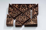 metal fabrication, furniture making, and photography. He works primarily with cut paper and laser-cut wood to create 3- D sculptures.
