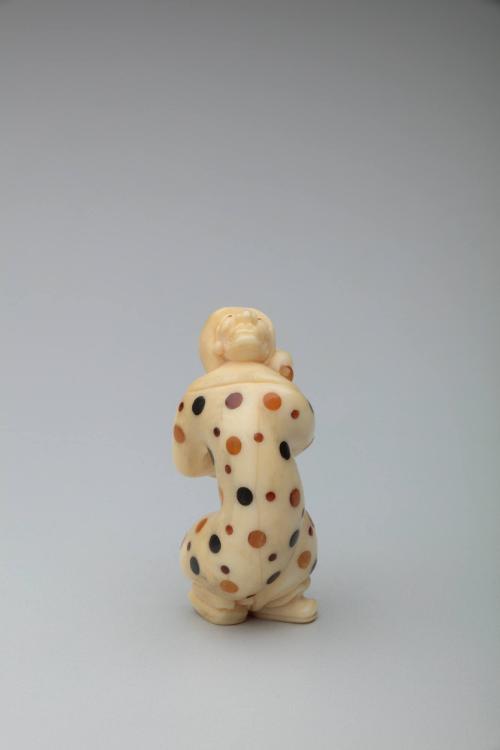 BiographyBishū 美洲 (Saitō Katsutoshi 齋藤勝利), b. 1943. Started learning to carve from his father when he was seventeen. Skillful carver, very imaginative and innovative, most of his netsuke bordering on the abstract. During the first quarter of the 20th century, his grandfather founded a production group whose work was signed Baisho or Baishodo. Bishu’s father, who once employed more than forty carvers, carried on the group.
