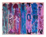 "Murray’s inclination was to work abstractly. In the early 1980s, Murray was diagnosed with prostate cancer, the condition that ultimately took his life. About that time, the epic battles that dominate his art began to incorporate iconography premised upon cells and biological disease. The abstract, amoebic forms already present in his work, and the energies or spirits they represented, assumed additional identities as healthy cells in combat with invading toxic ones. Medical and theological imperatives coalesced."